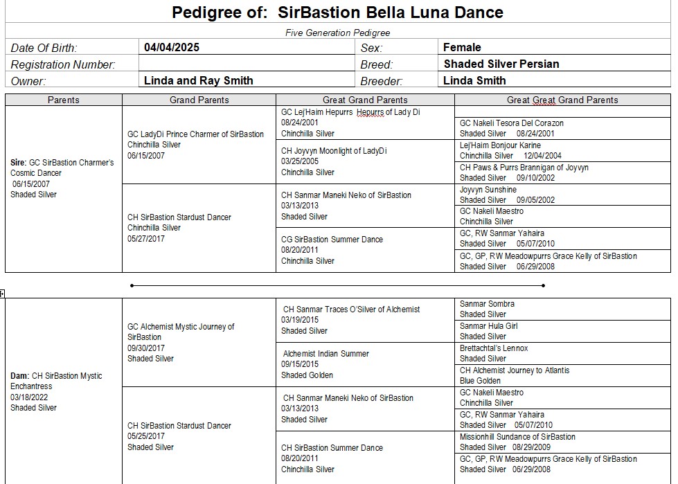Sire: GC SirBastion Cosmic Dancer